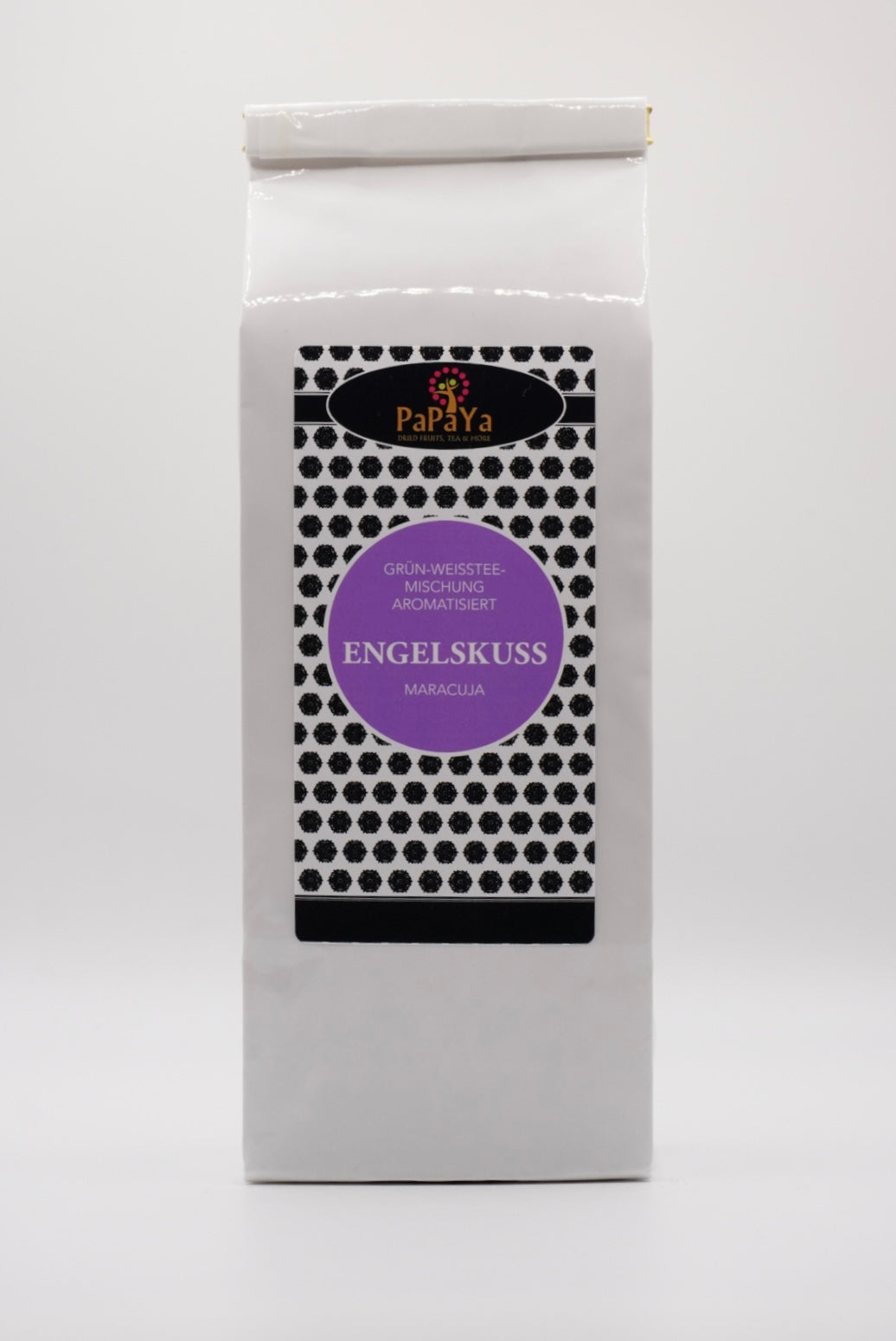Dieser himmlische Tee vereint hochwertigen grünen Lung Ching Tee und den feinen weißen Pai Mu Tan Tee in einer einzigartigen, blumigen Mischung. Aromen von Passionsfrucht, Ananas und Erdbeere harmonieren perfekt mit der Basis und werden von Fruchtstückchen und Blüten ergänzt. Eine Kreation, die sowohl geschmacklich als auch optisch begeistert – ein Tee für Engel gemacht.