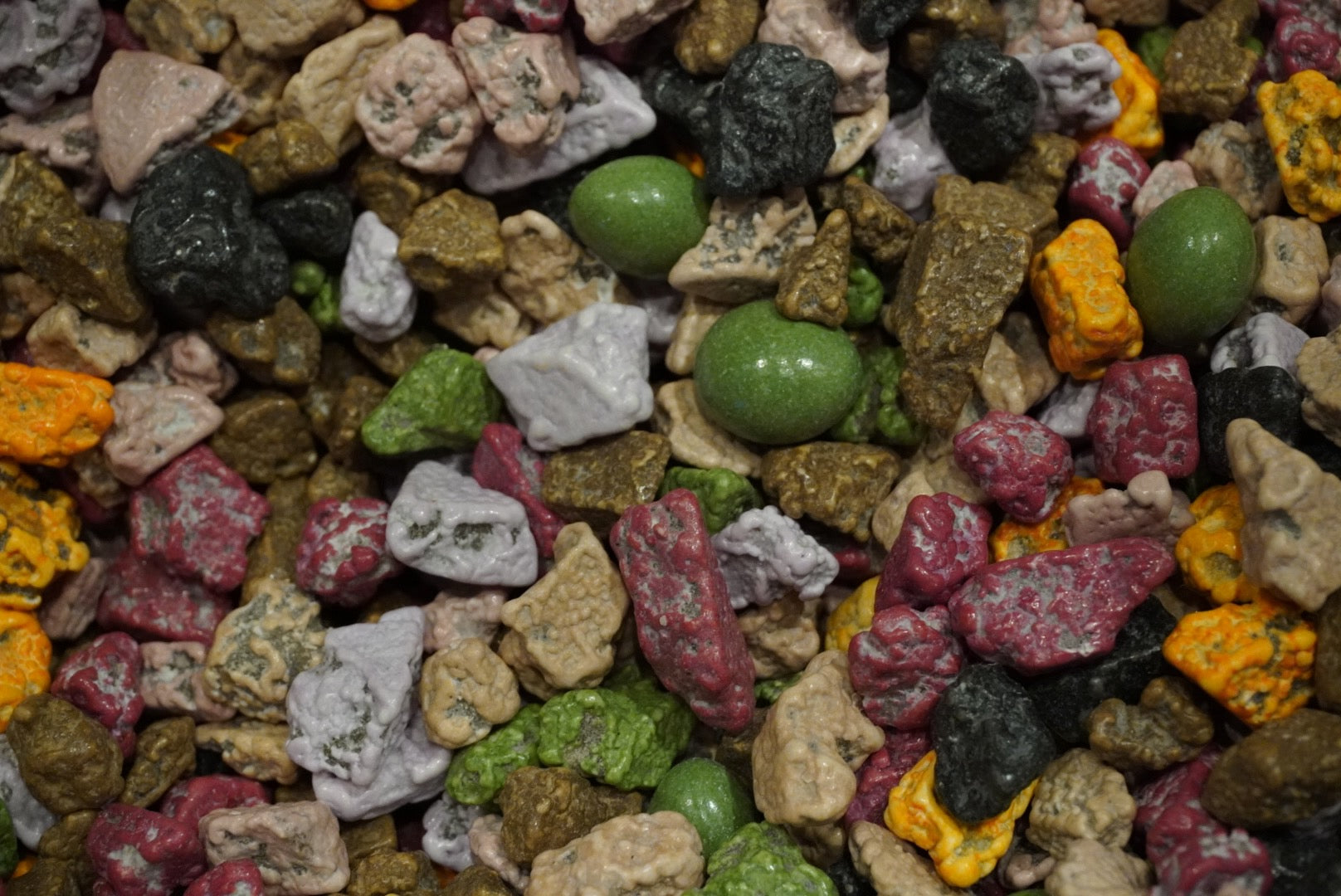 Kleine, bunt schimmernde „Kakaosteine“ mit knackiger Hülle und feinem Schokoladenkern. Ein verspielter Schokoladensnack, der sowohl optisch als auch geschmacklich überrascht – ideal zum Naschen, Dekorieren oder Verschenken.
