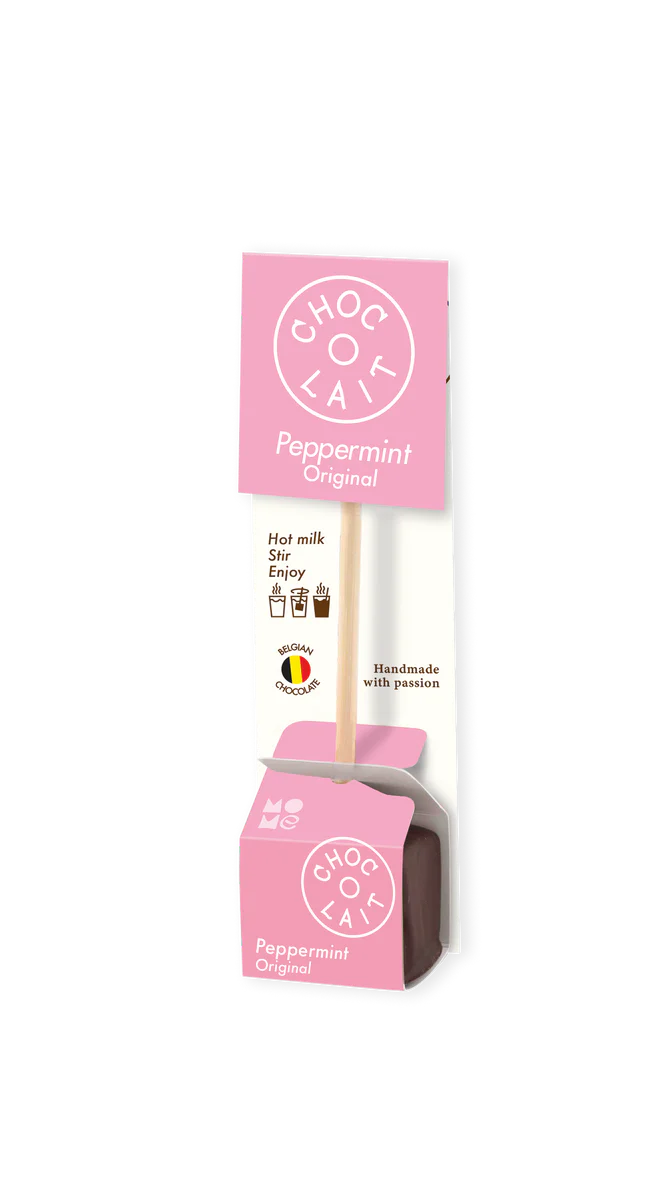 Erfrischend und intensiv zugleich: Choc-o-lait Peppermint kombiniert belgische Zartbitterschokolade mit einem Kern aus feiner Pfefferminz-Ganache. In heißer Milch entsteht daraus ein belebender Genussmoment – harmonisch ausbalanciert zwischen zarter Schokolade und frischer Minze.