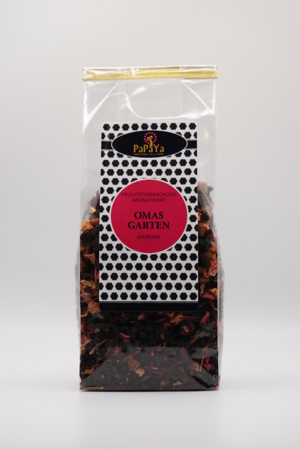 Fruchtige Erinnerungen an Erdbeeren, Brombeeren, Rhabarber und Johannisbeeren vereinen sich in dieser liebevoll abgestimmten Früchteteemischung – wie ein Spaziergang durch Omas Garten.
