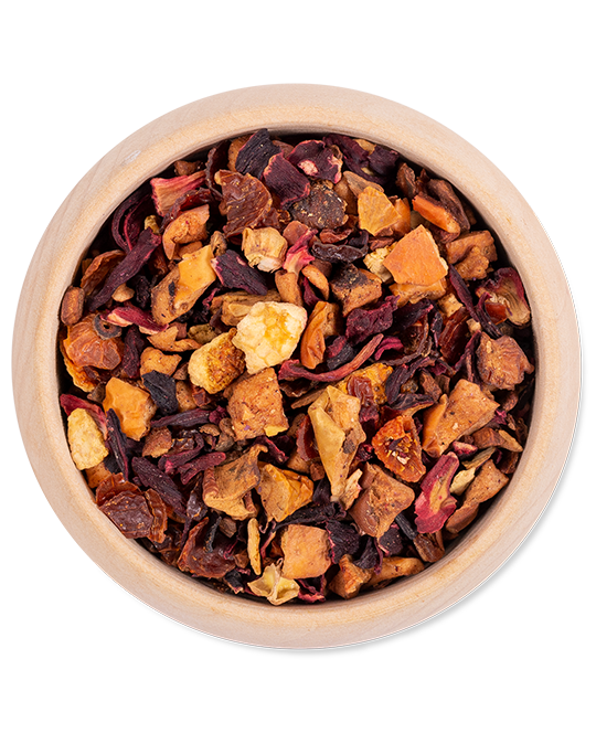 Zutaten: Apfel, Hibiskus, Hagebutte, Zimt, Orangenschalen, Aroma.